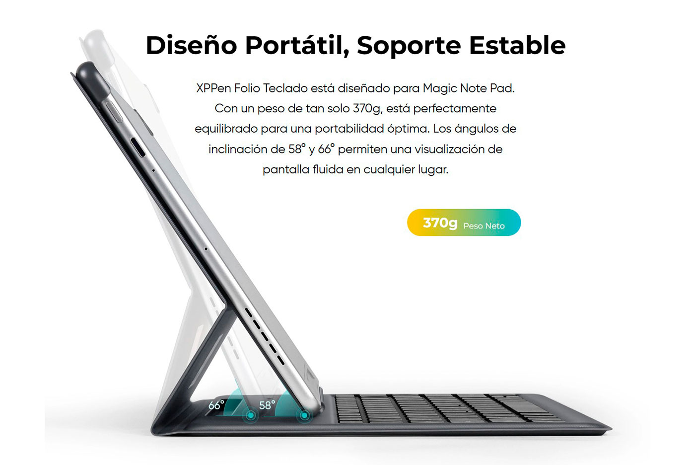 - Conexión Bluetooth, Solo 370g para una portabilidad total.